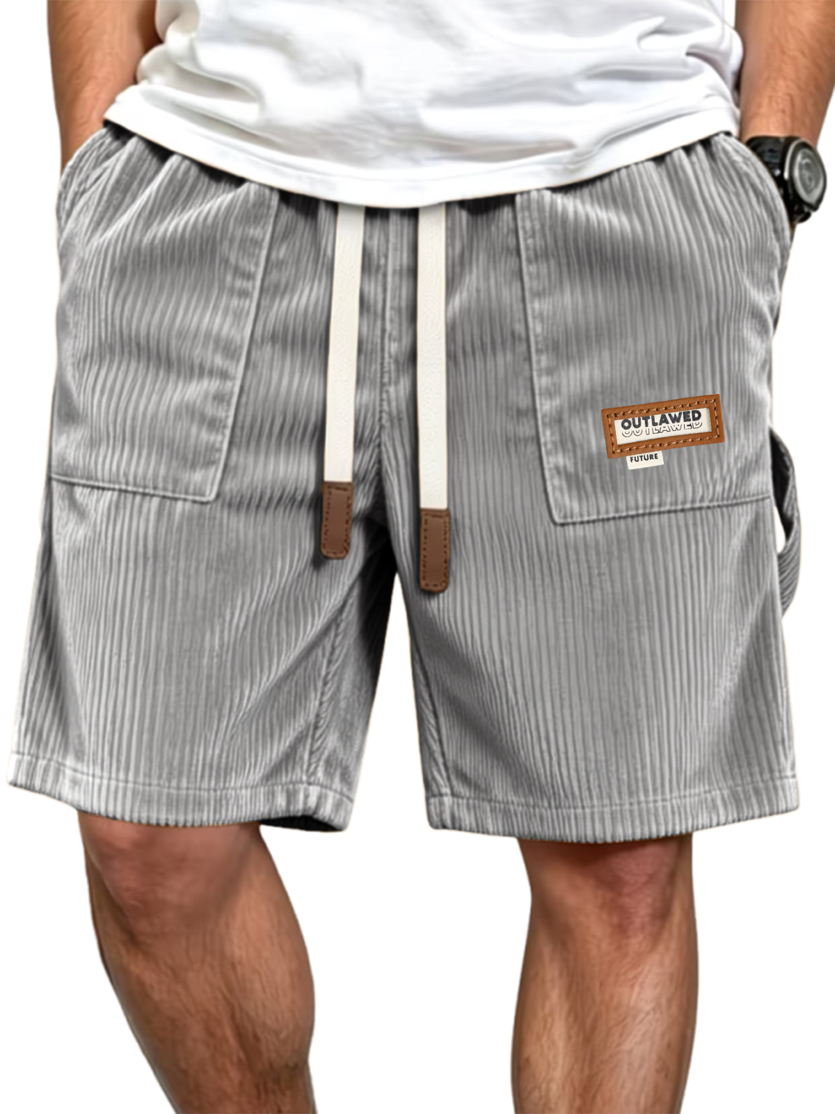 Vintage Corduroy Casual Patch Pocket Shorts with Embroidery