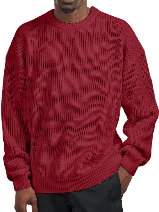 Men's Loose Casual Retro Knitted Sweater Crew Neck Top