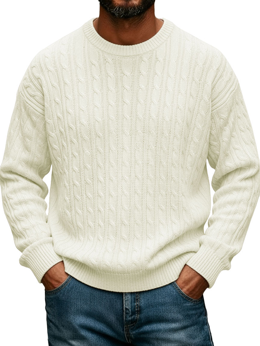 Men's Fashionable Casual Crew Neck Cable Knit Long-Sleeve Sweater