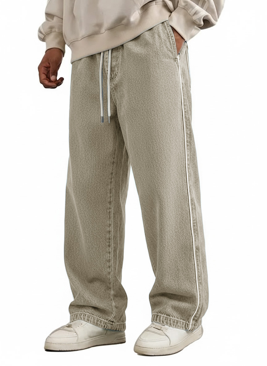 Men's Wear Retro Fashion Vintage Loose Pockets Elastic Waist Tether Pants