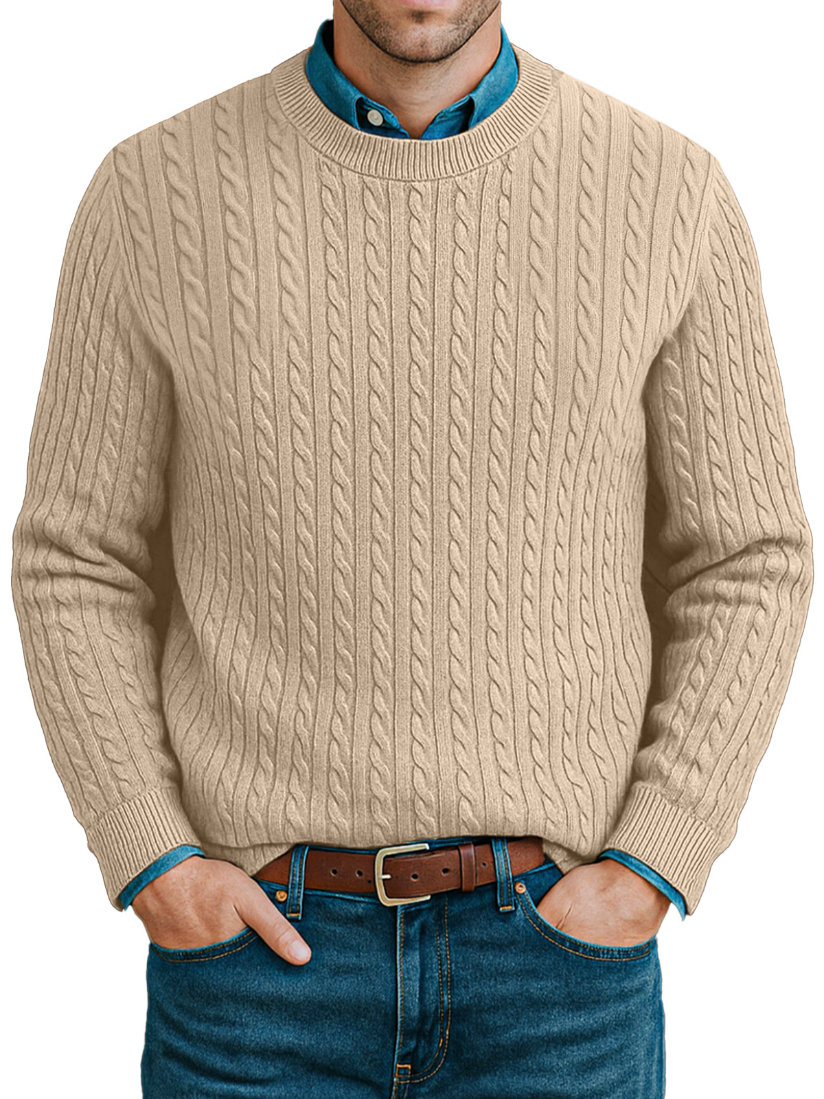 Men's Casual Twist Knitted Versatile Crew Neck Sweater