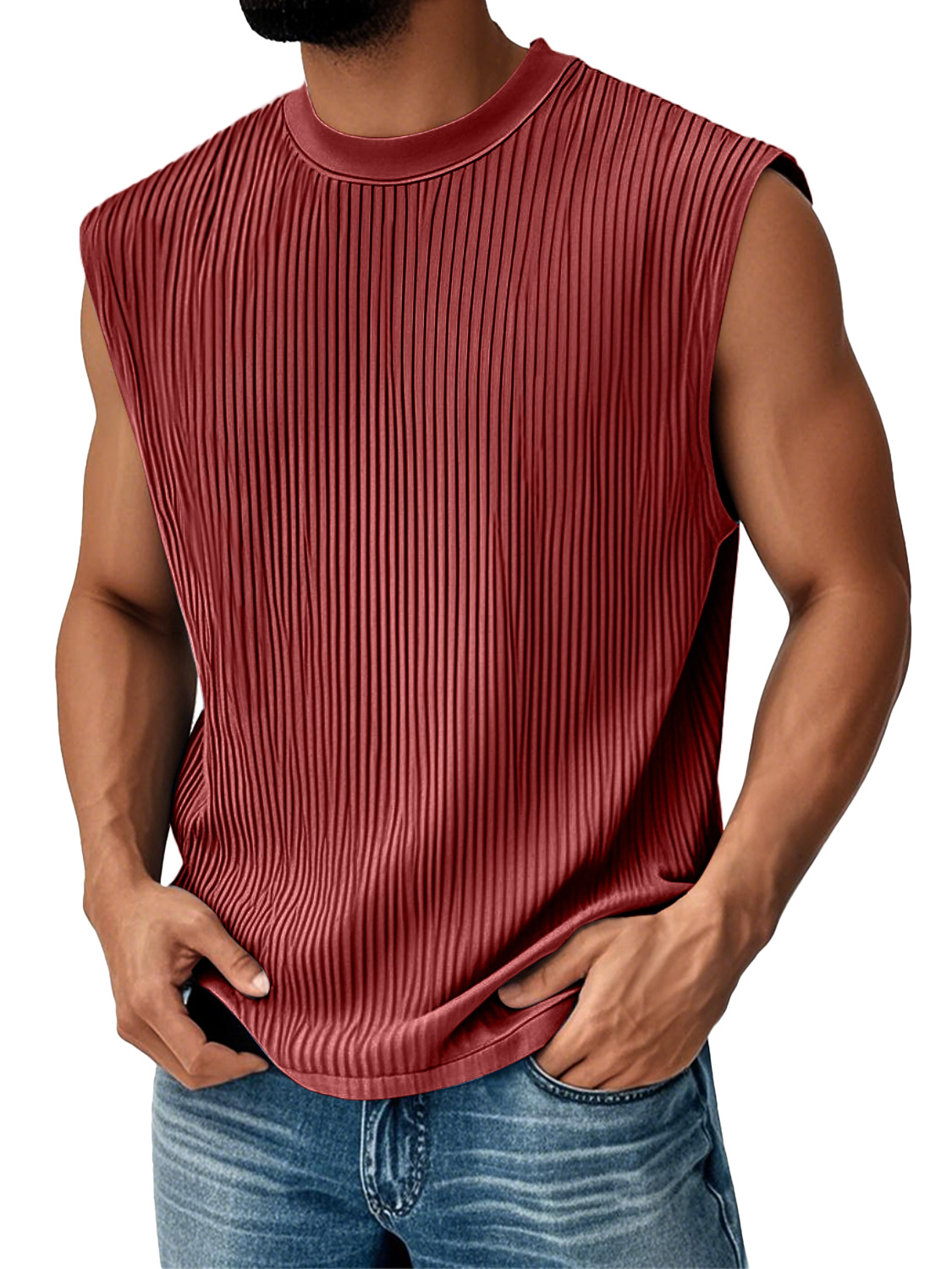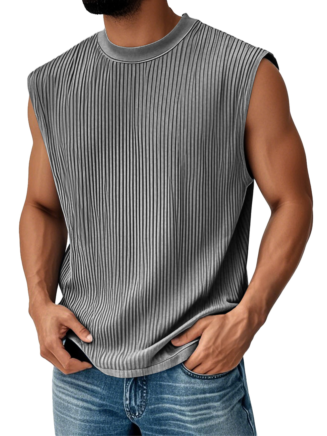 Men's Daily Ribbed Round Neck Casual Solid Color Sleeveless Vest