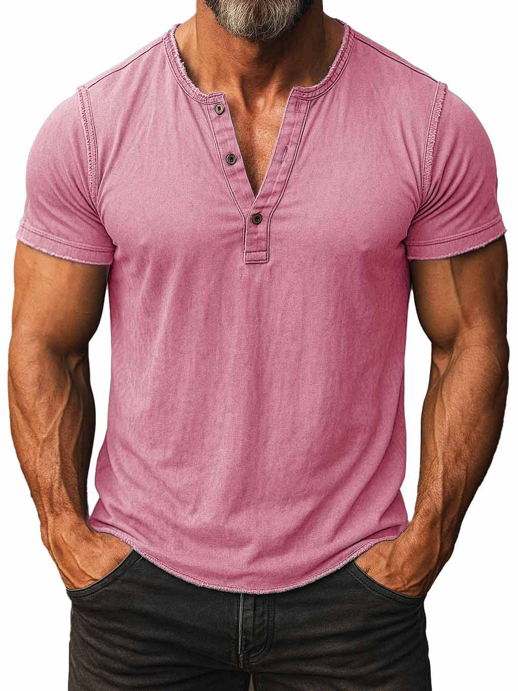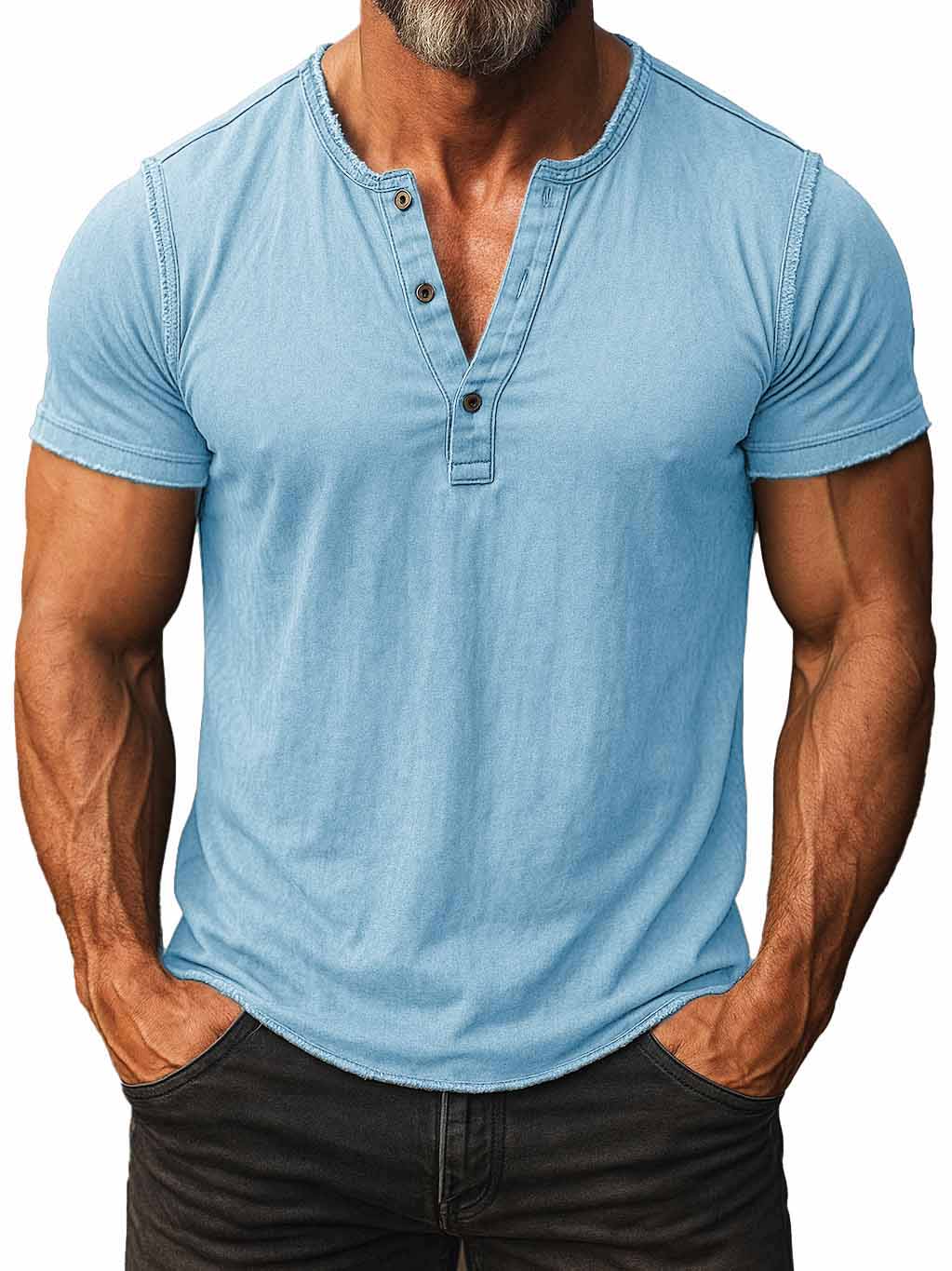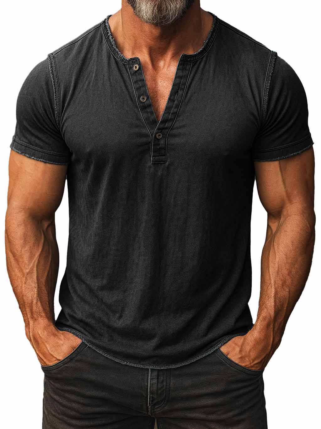 Men's Fashion Retro Distressed Short-sleeved Henley Shirt