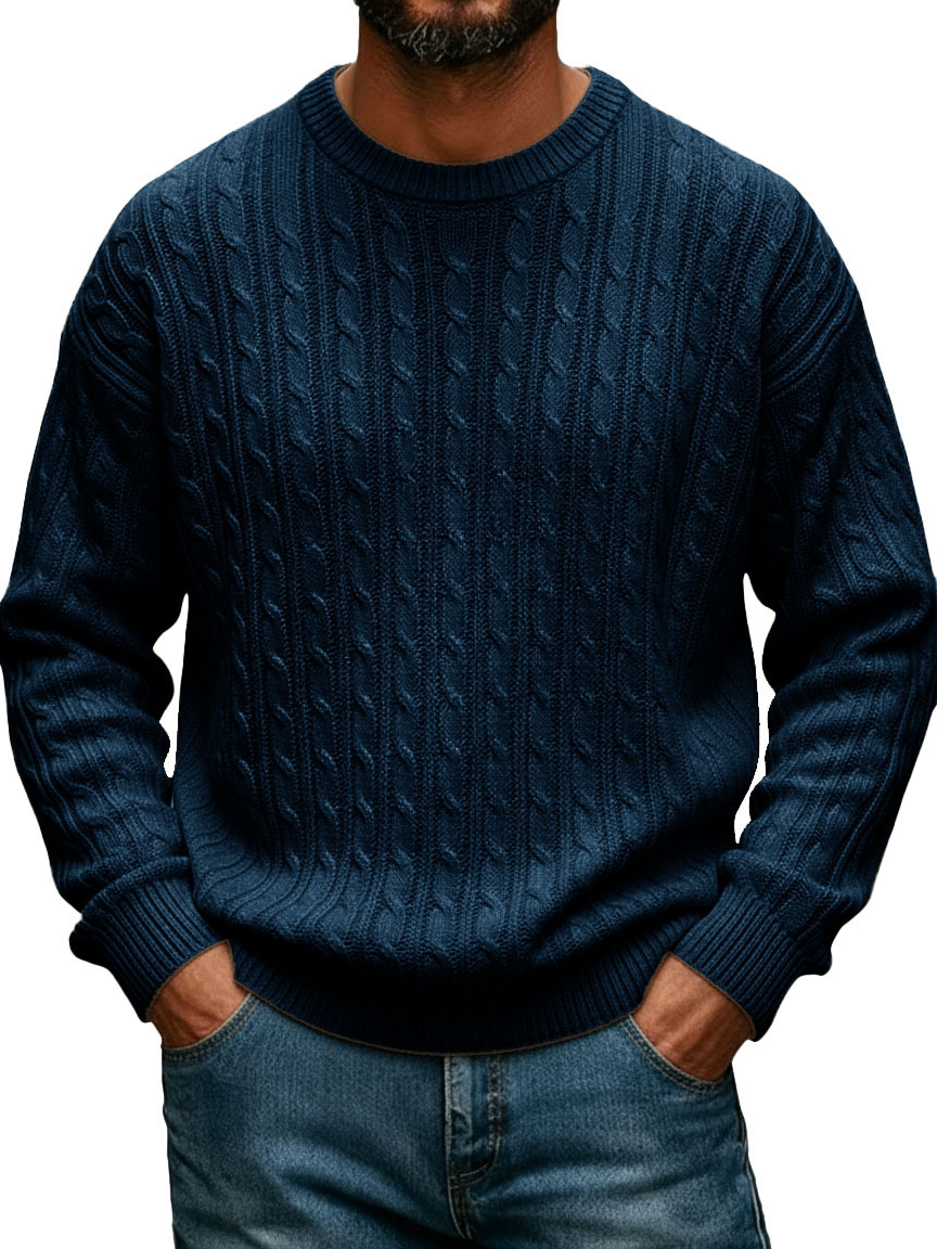 Men's Fashionable Casual Crew Neck Cable Knit Long-Sleeve Sweater