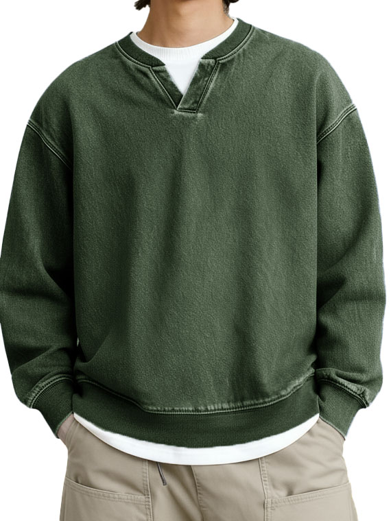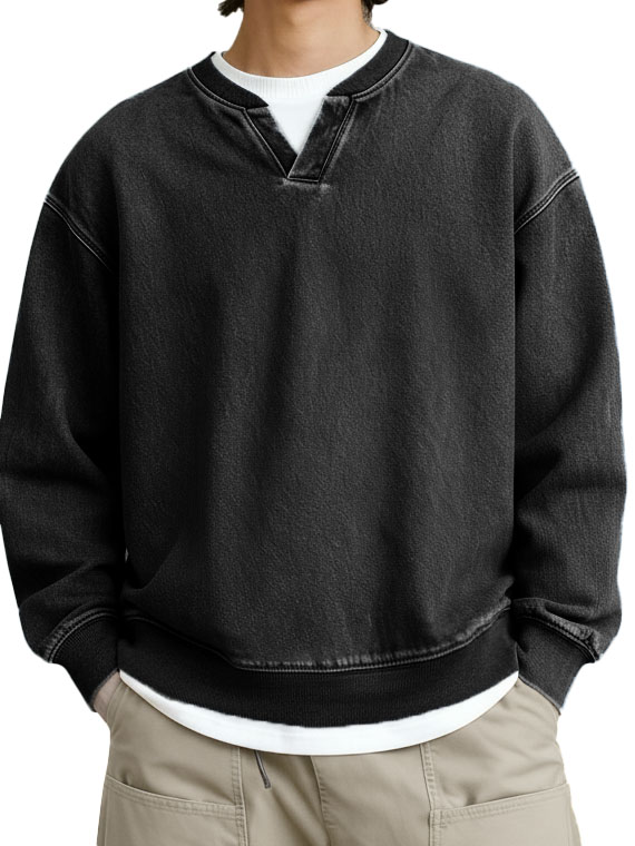 Men's Fashionable Casual Retro Faux Two-Piece V-Neck Long-Sleeved Top