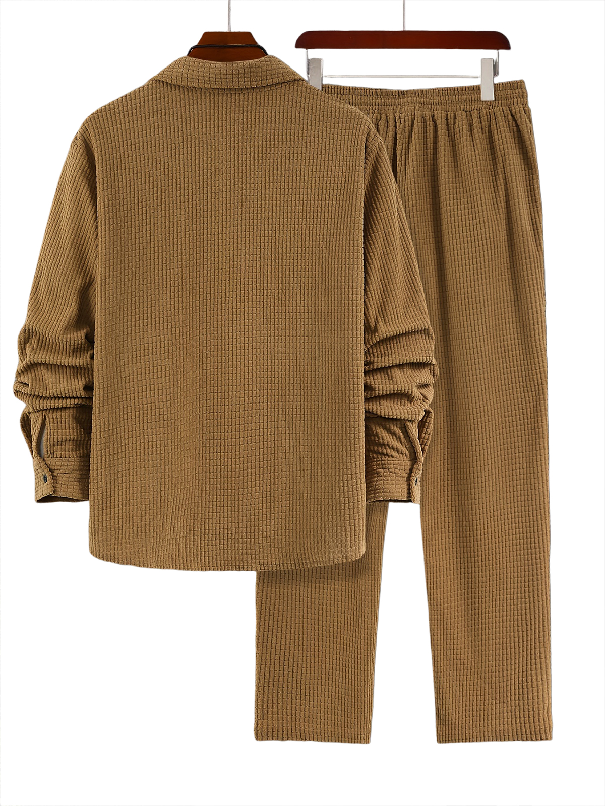 Men's Retro Corduroy Long-Sleeved Shirt and Pants Set OOTD