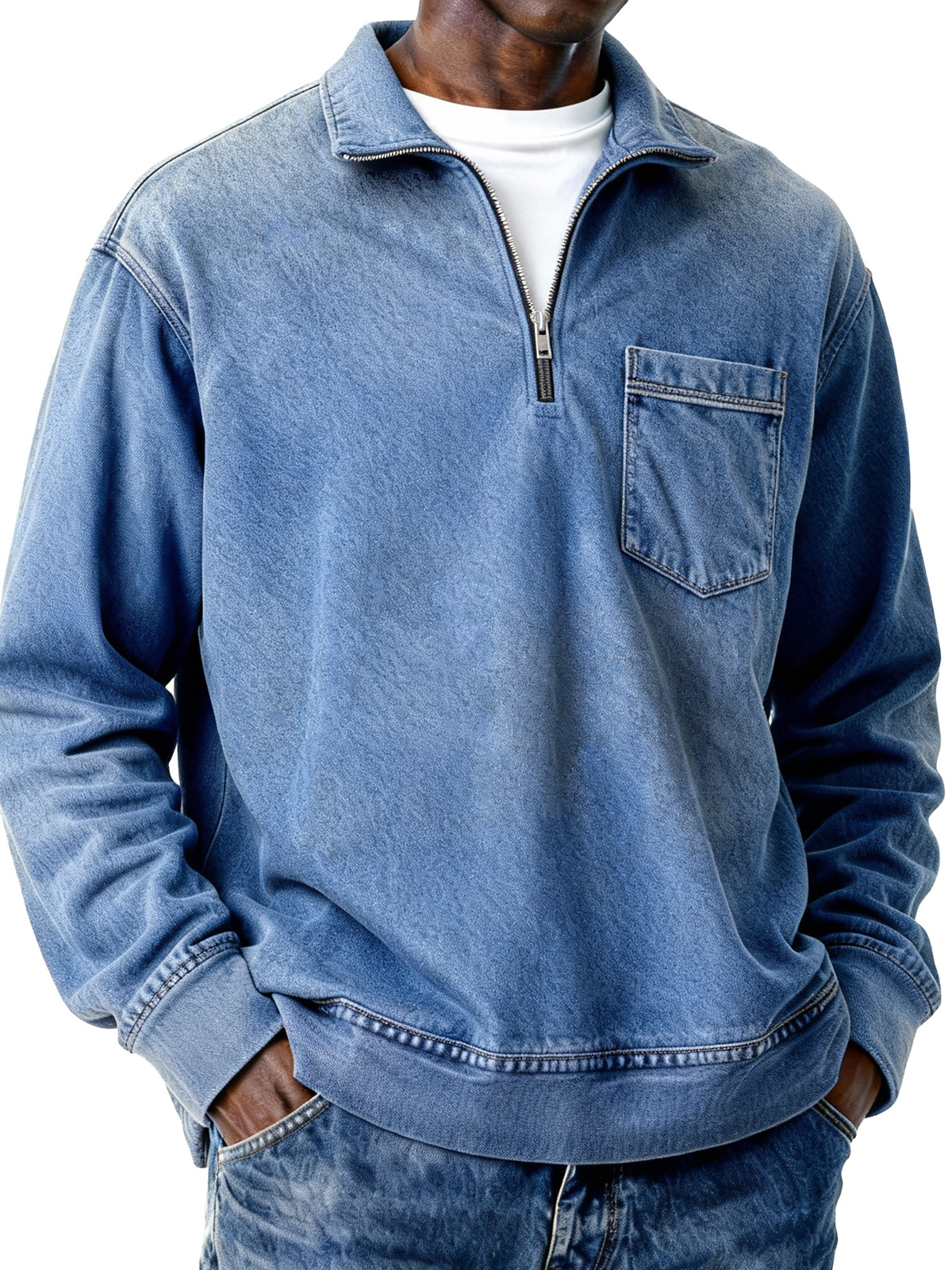 Men's Retro Distressed Zipper Loose Long-Sleeve Polo Shirt