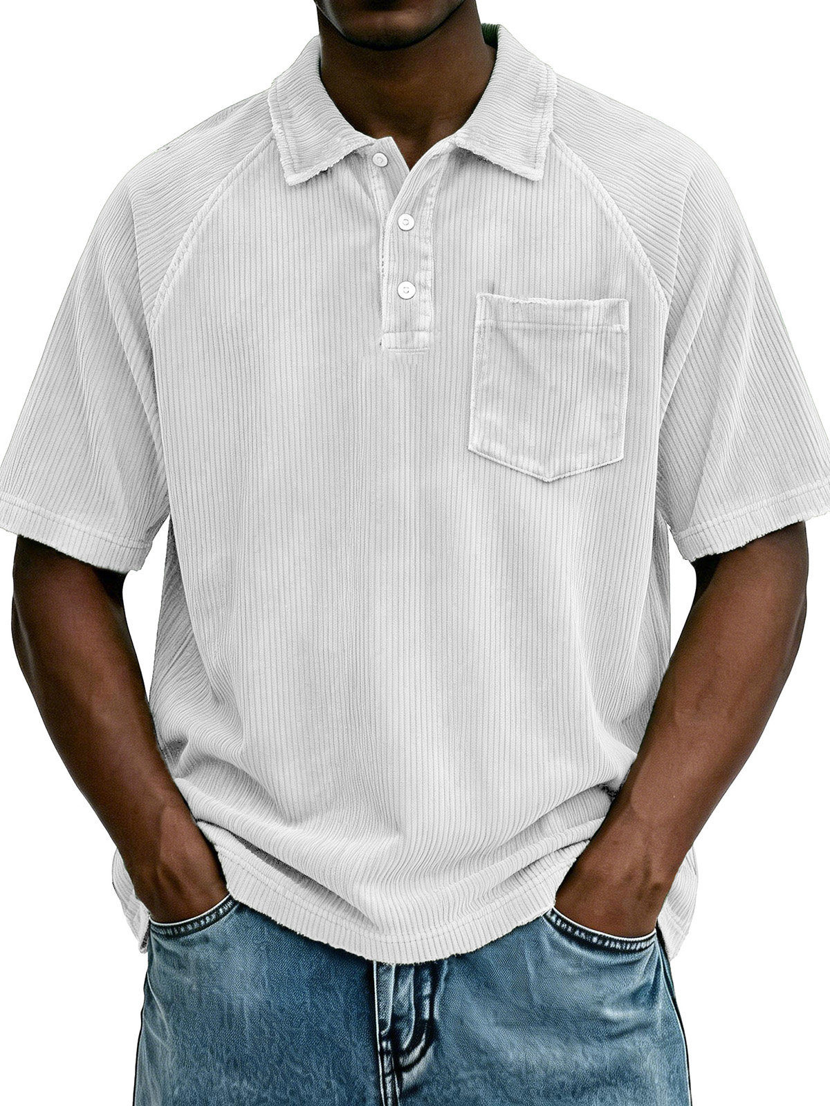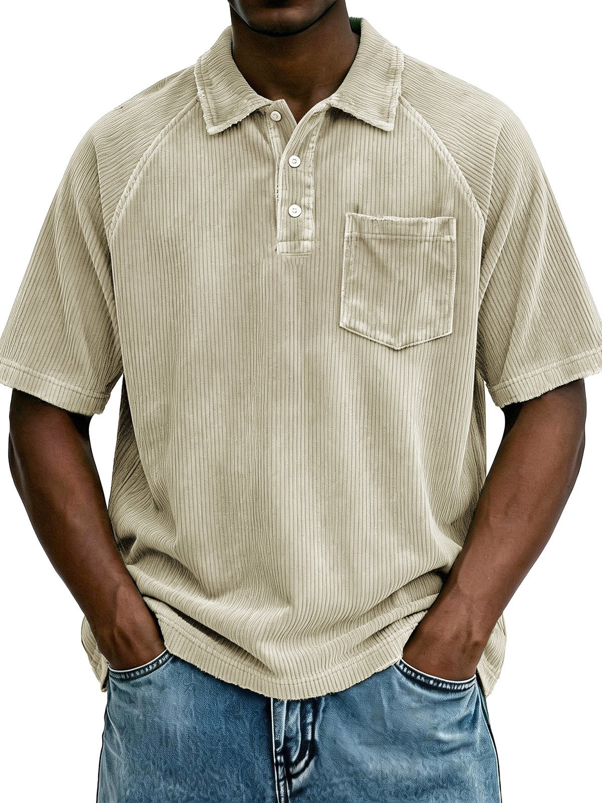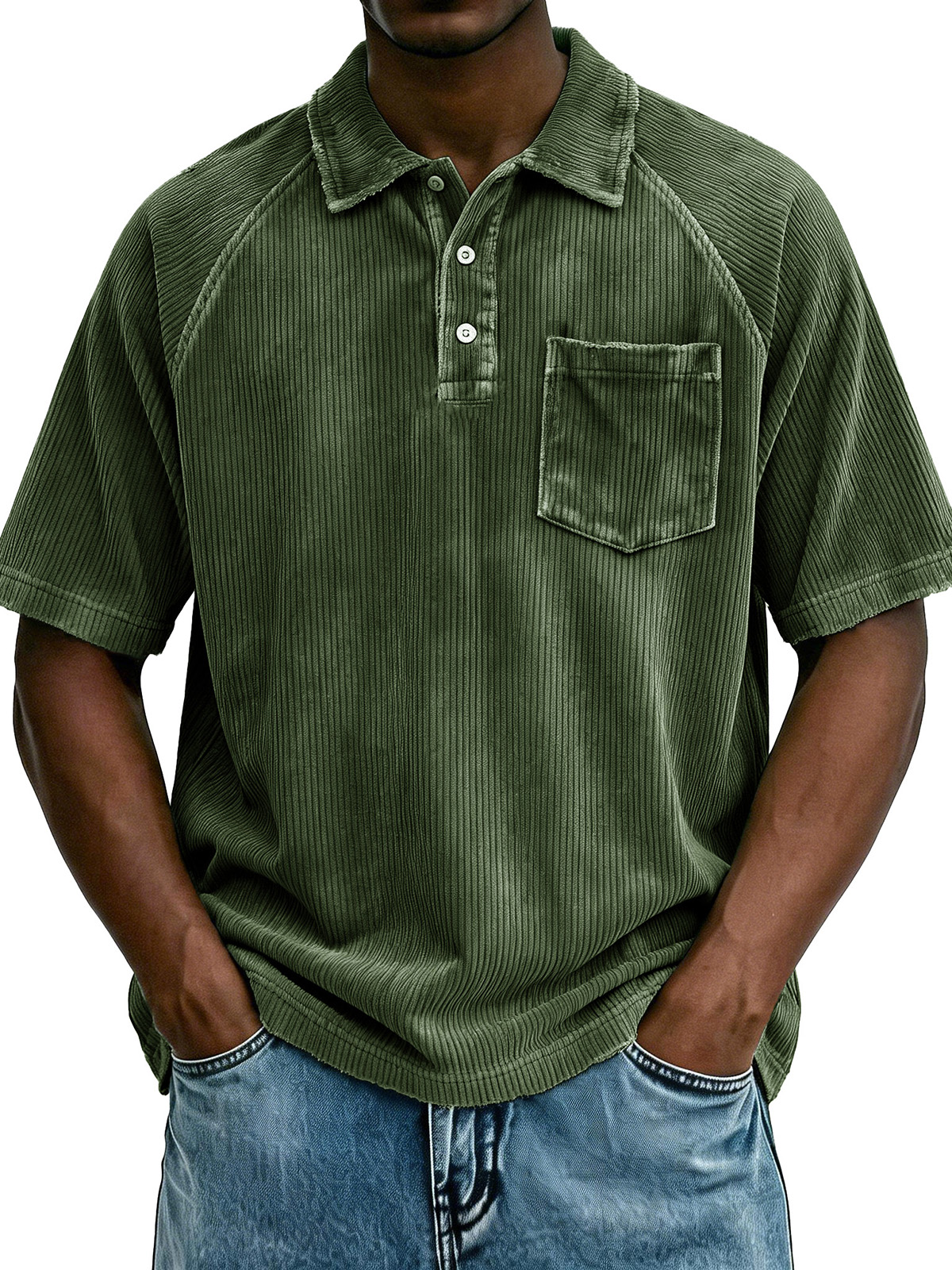 Men's Retro Raglan Pocket Zipper Loose Short-Sleeve Polo Shirt